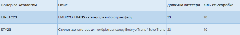 EMBRYO TRANS катетер для ембріотрансферу використовується для введення в порожнину матки ембріонів, запліднених in vitro (ЕКЗ).